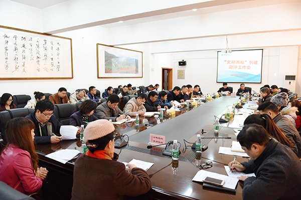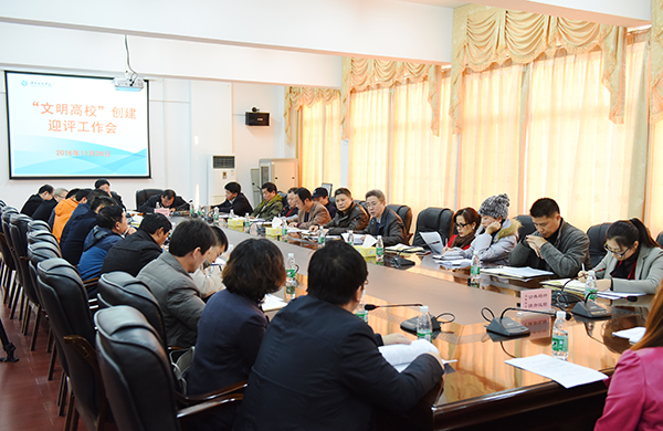 校党委宣传统战部部长杨涛就“文明高校”创建各项工作准备情况进行详细汇报,并就“文明高校”迎评期间的各项具体工作进行了部署。